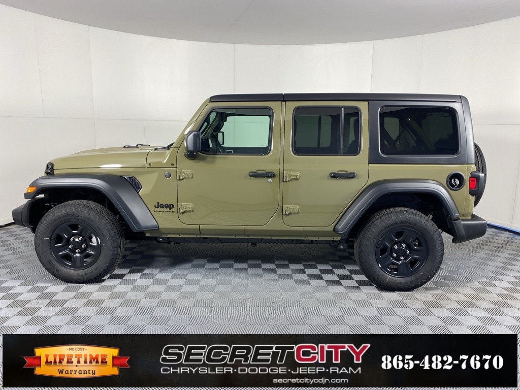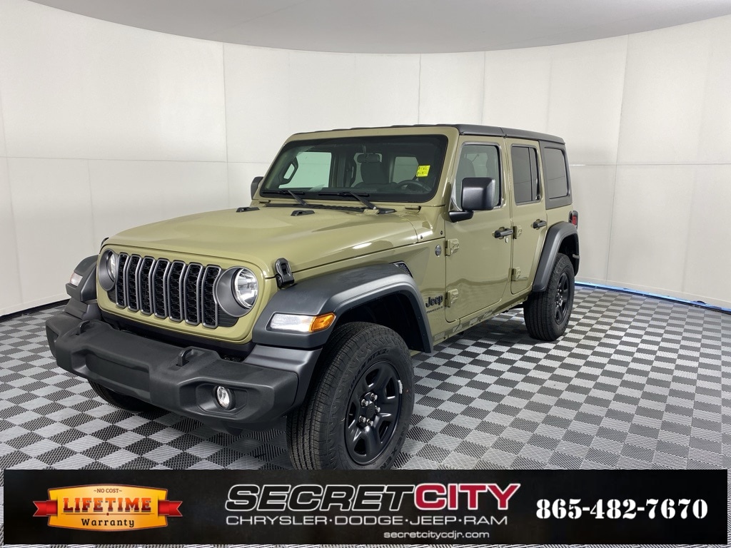 2025 Jeep Wrangler Sport 2.0L I4 DOHC 4WD 8-Speed Automatic Backup Camera, Bluetooth, Apple CarPlay / Android Auto, Life Time Powertrain Warranty, AM/FM radio: SiriusXM, Apple CarPlay/Android Auto, Quick Order Package 22B Sport, Radio: Uconnect 5 w/12.3" Display, Steering wheel mounted audio controls.